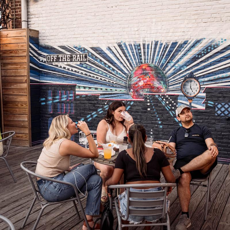 All Aboard!! Off the Rail strives to provide a warm, relaxing and casual atmosphere where families and friends can catch their favorite sports event, listen to music and catch up over great food and refreshing drinks. Relax in our cozy booths and take in the beautiful view we have overlooking State Street. Grab a drink at our rooftop bar or dine alfresco on our rooftop patio. We embody the local, family friendly and diverse feel of Media, Pa Everybody's Hometown.